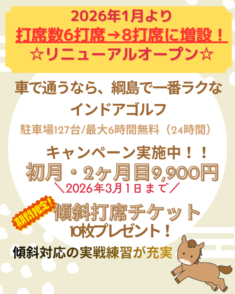 A19.トーナメントスーパーベントをご用意しております。順目12フィート逆目10フィートになります。芯で打つ練習をしていただければと思います。