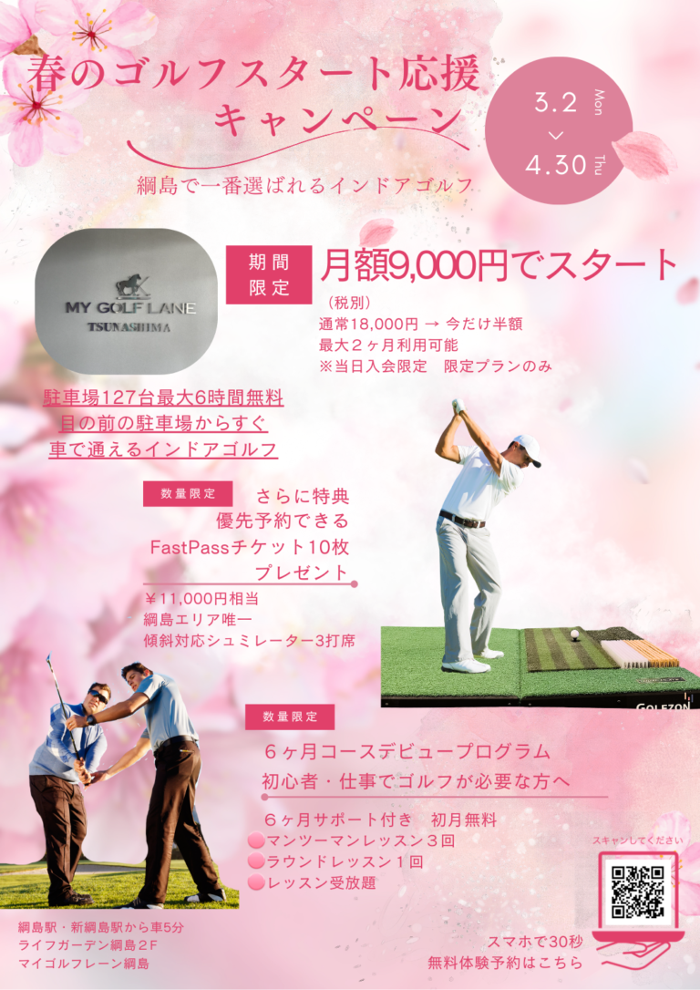 A16.50分のレッスンでショートゲームから徹底的にスイングづくりをしていきます。初心者の方でも4ヶ月でコースデビューが可能です。